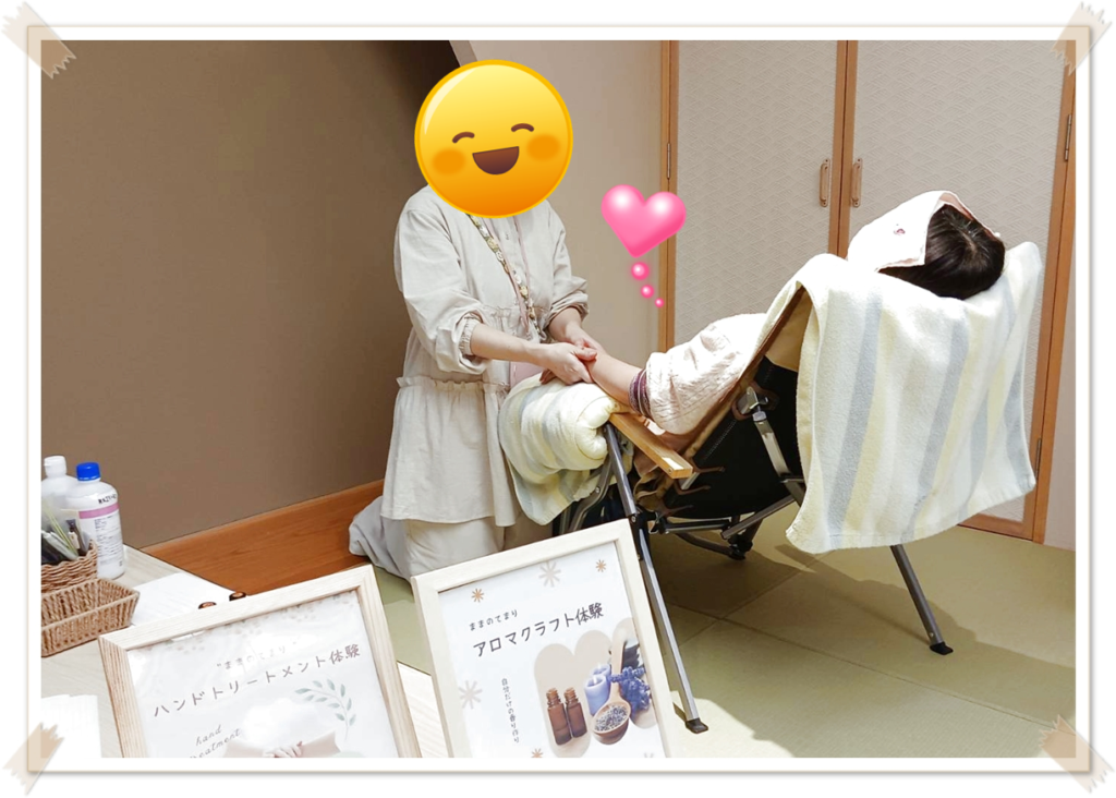 立ち寄った別の会員さんも、パソコン作業で疲れた手をもみほぐしていただき、「スベスベになった!身体も暖かい♪」と喜んでいました。今後も応援していきたいと思える素敵な皆さまでした!